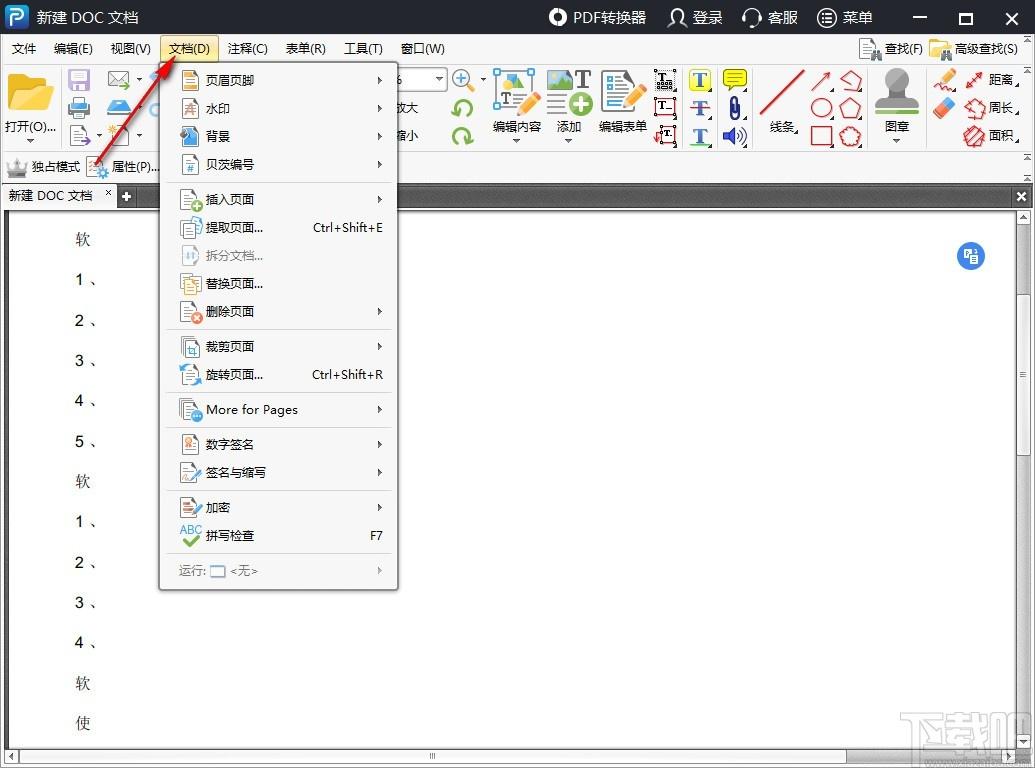 5、文档,页面页脚、水印、背景、插入页面、提取页面等